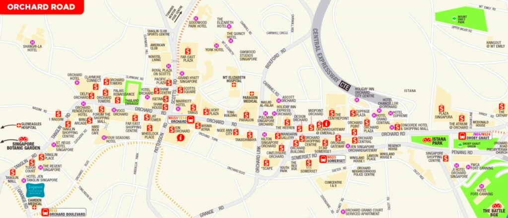 - Orchard MRT → Somerset → Dhoby Ghaut